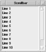 Clicking on either arrow will move the information in the associated widget one unit at a time. What the unit is depends on the type of widget with which the Scrollbar is associated. With an Entry widget, the units are characters. With a Listbox widget and a vertical Scrollbar, the units are lines. Clicking in the trough on either side of the slider will page the information in the widget in that direction. You can also click directly on the slider and, holding the mouse button down, move it directly.