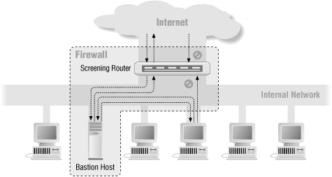 Compared to other architectures, however, such as the screened subnet architecture, there are some disadvantages to the screened host architecture. The major one is that if an attacker manages to break in to the bastion host, nothing is left in the way of network security between the bastion host and the rest of the internal hosts. The router also presents a single point of failure; if the router is compromised, the entire network is available to an attacker. For this reason, the screened subnet architecture, discussed next, has become increasingly popular.